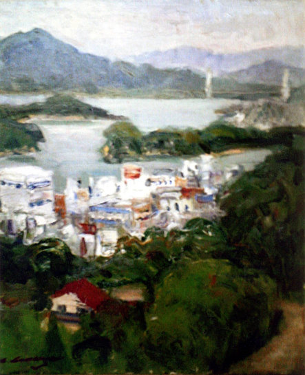 洋画 油彩「因島風景」