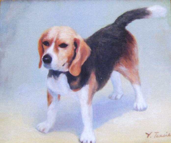 洋画 油彩「愛犬ミトン」