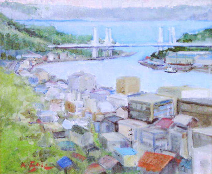 洋画 油彩「尾道水道」