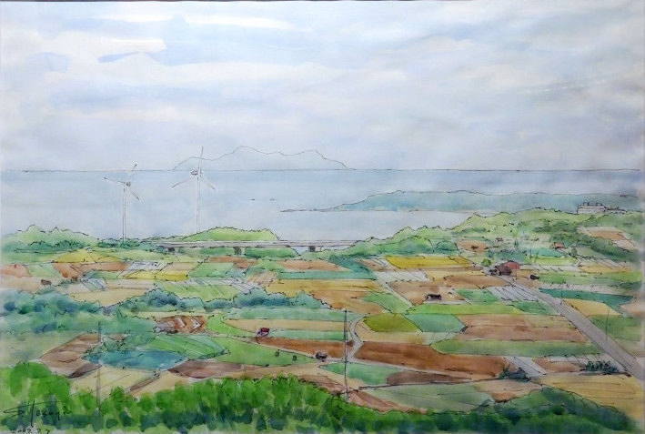 洋画 水彩「三浦半島風景」