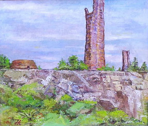油彩画 「想(犬島)」